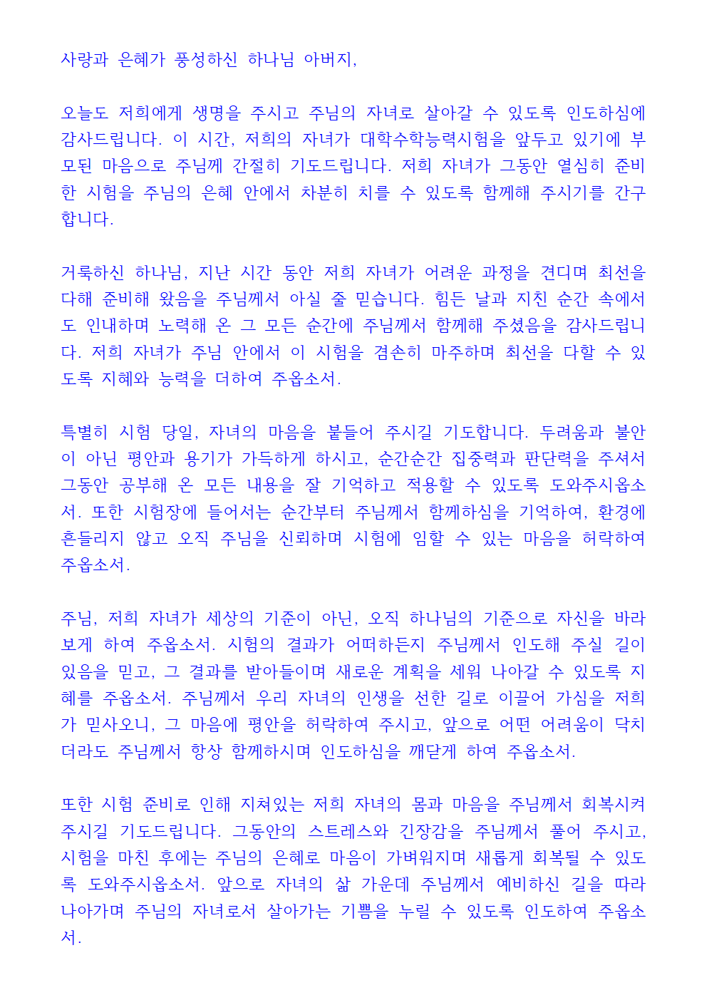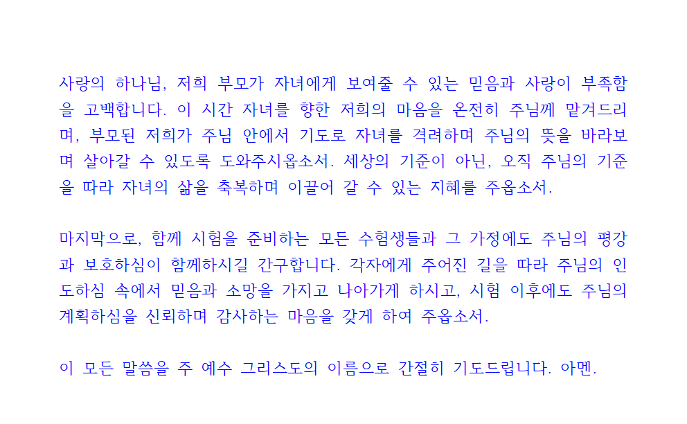 수험생 자녀 축복 기도문