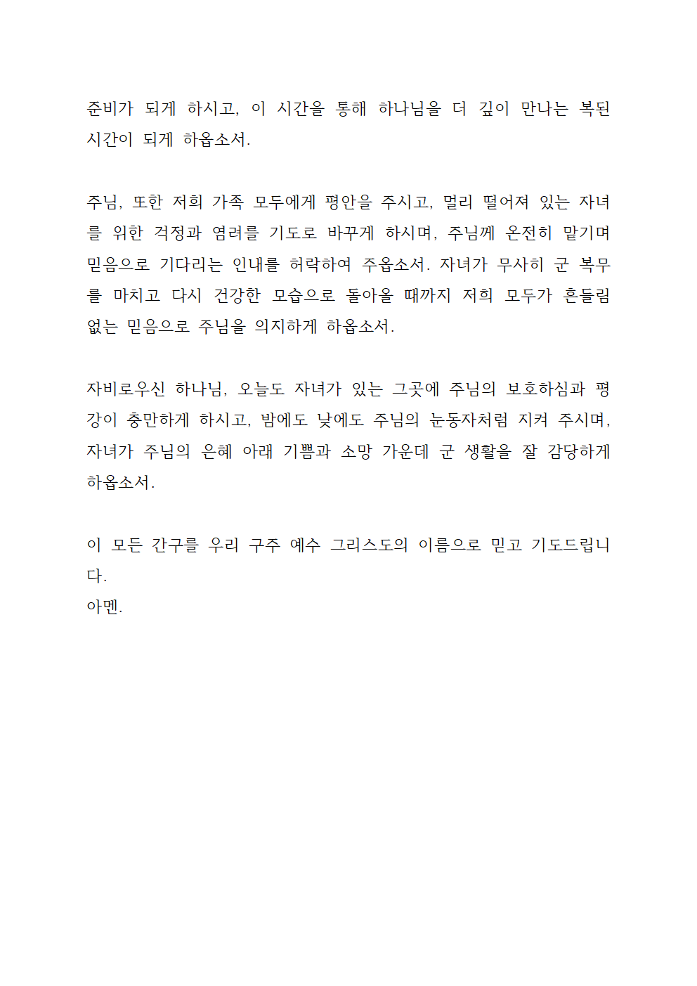 자녀를 위한 기도문 (자녀 군복무)
