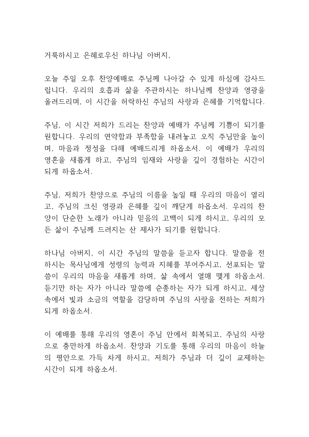 5. 주일 찬양예배 대표기도문