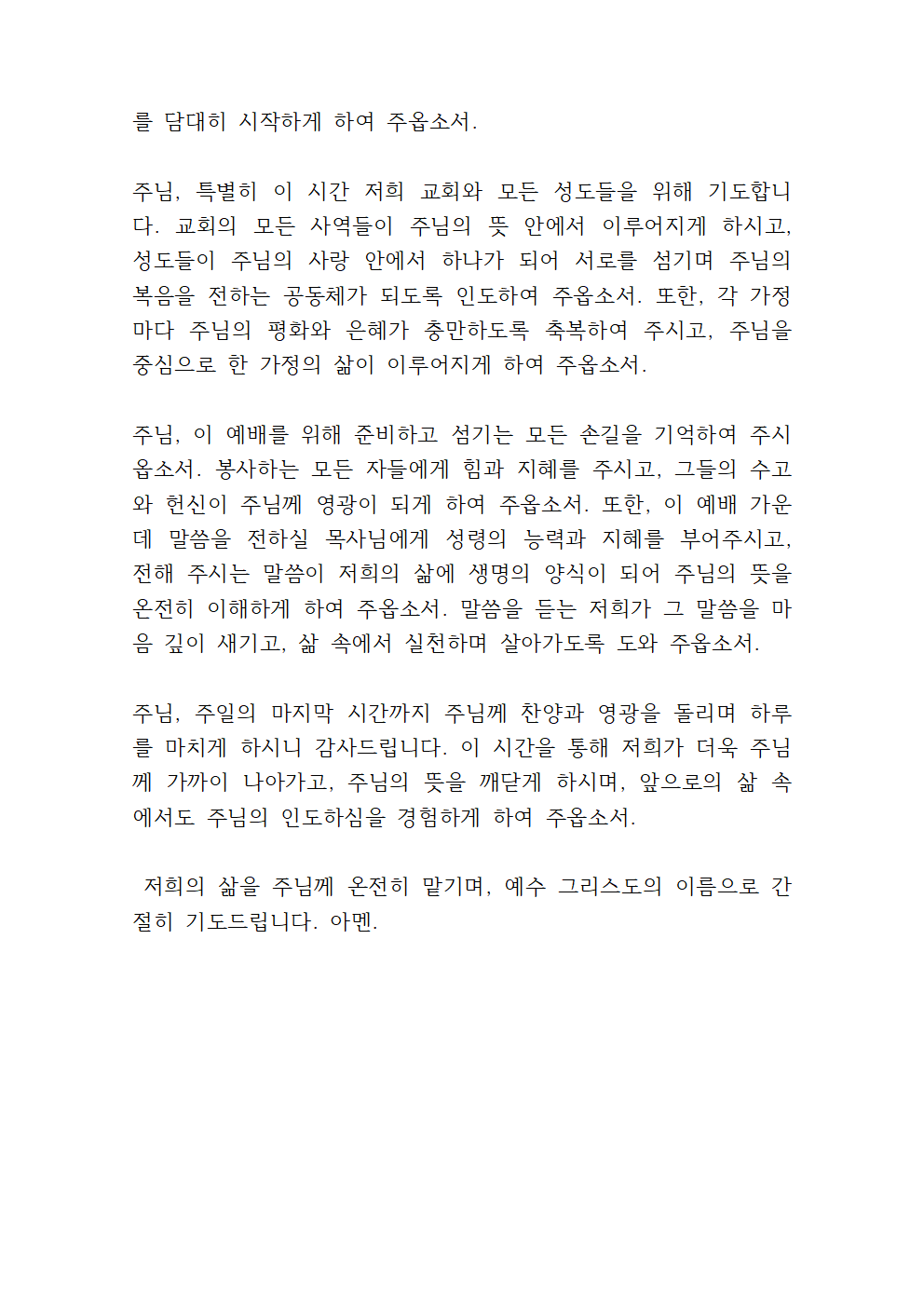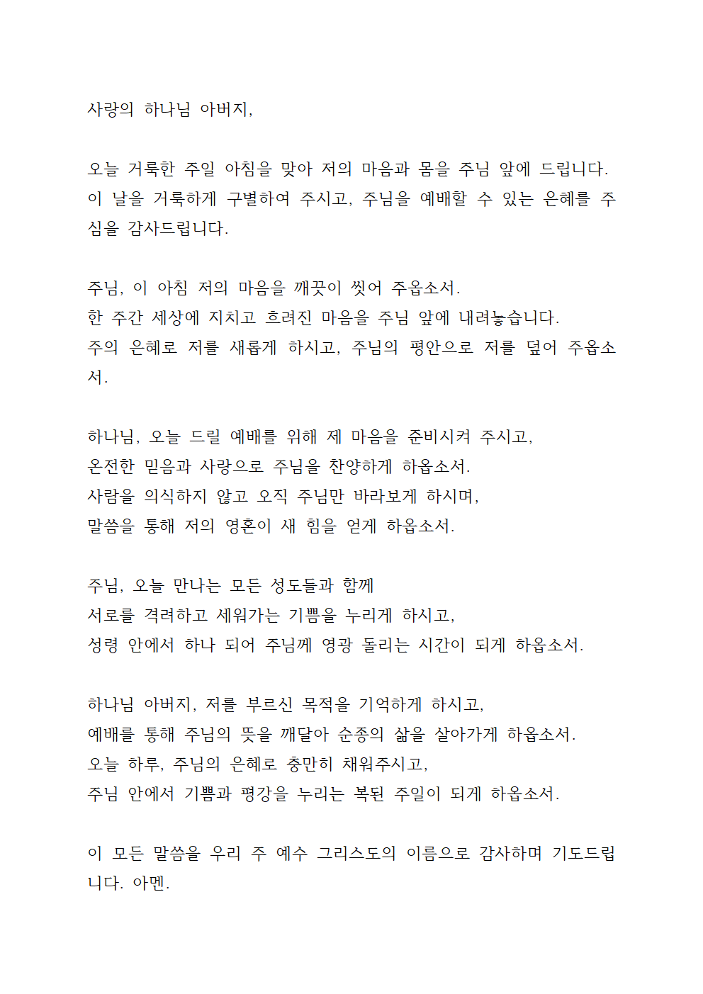 1. 주일 아침 기도문