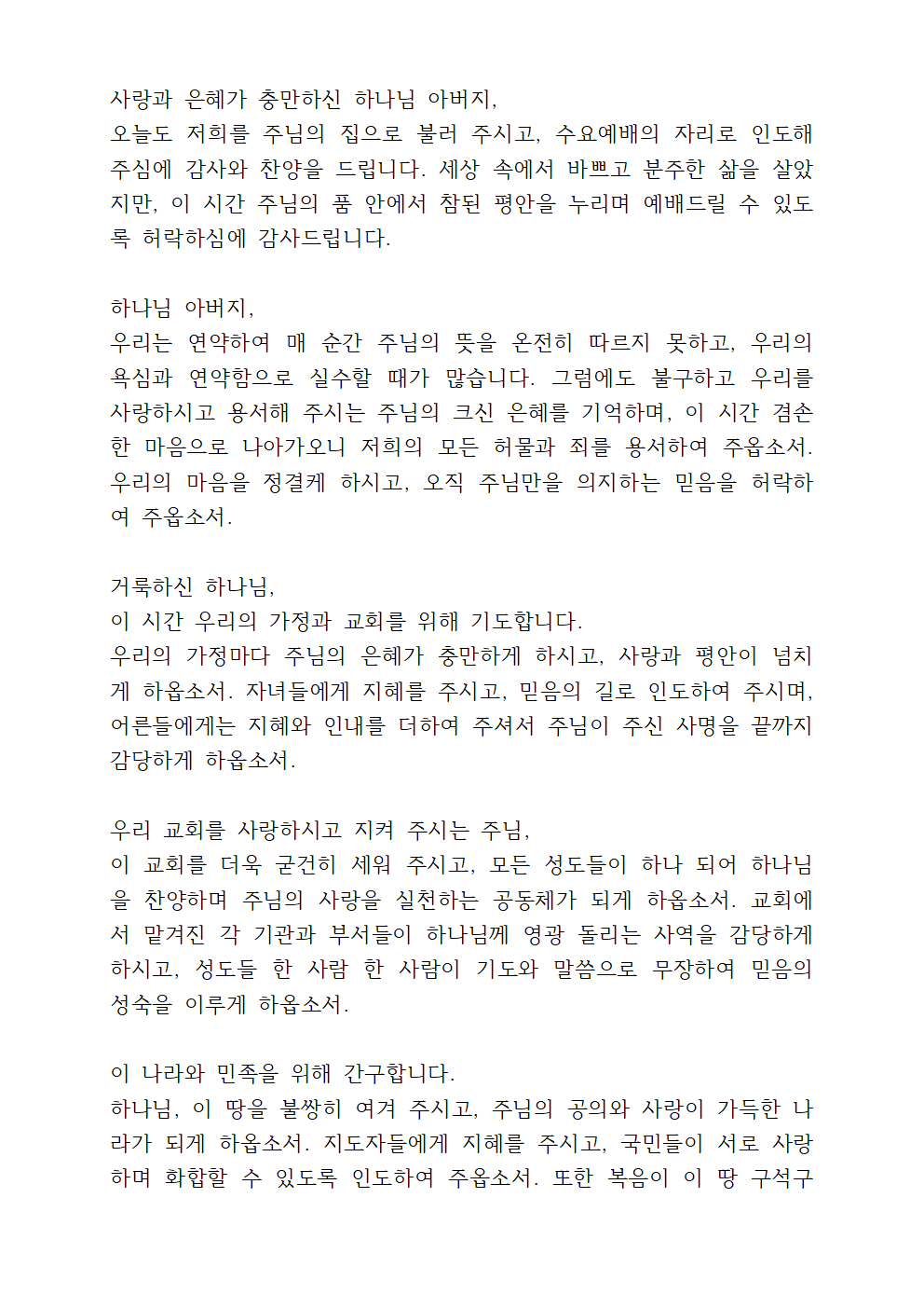 2025년 2월 넷째 주 금요기도회 대표기도문 내용