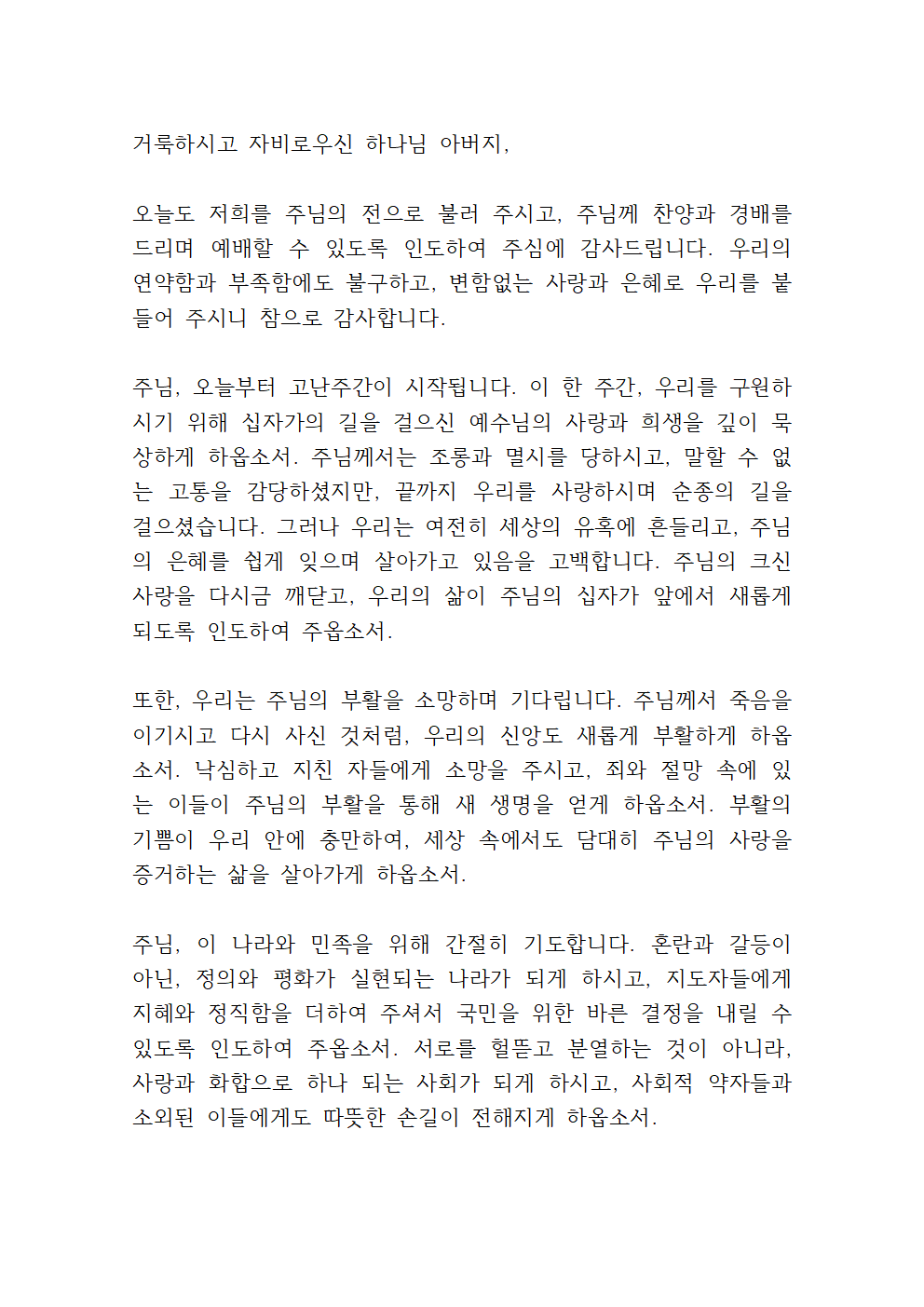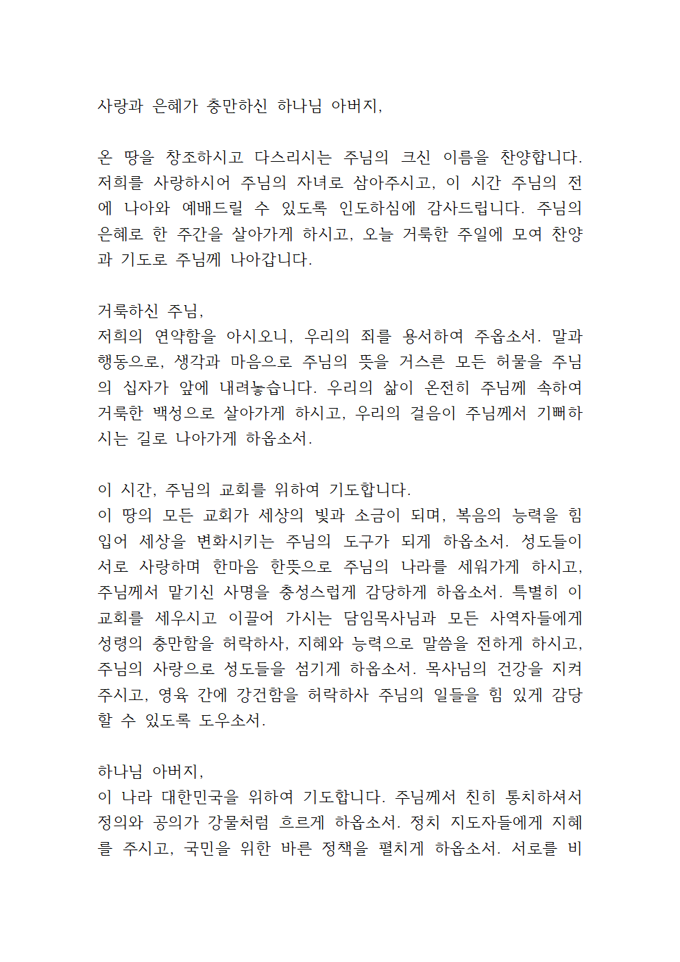 2025년 4월 주일낮예배 대표기도문 모음 (hwp 파일)
