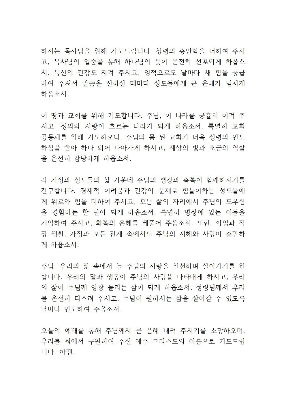 거룩하신 주님, 저희의 연약함을 아시오니, 우리의 죄를 용서하여 주옵소서. 말과 행동으로, 생각과 마음으로 주님의 뜻을 거스른 모든 허물을 주님의 십자가 앞에 내려놓습니다. 우리의 삶이 온전히 주님께 속하여 거룩한 백성으로 살아가게 하시고, 우리의 걸음이 주님께서 기뻐하시는 길로 나아가게 하옵소서.