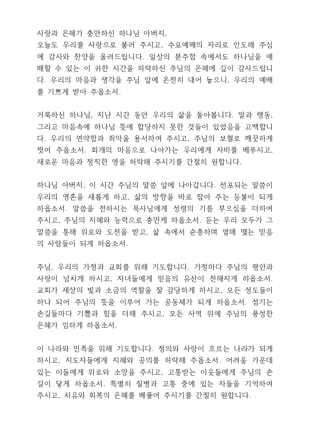 다른 기도문 보기 (주일 예배, 수요 예배, 금요기도회)