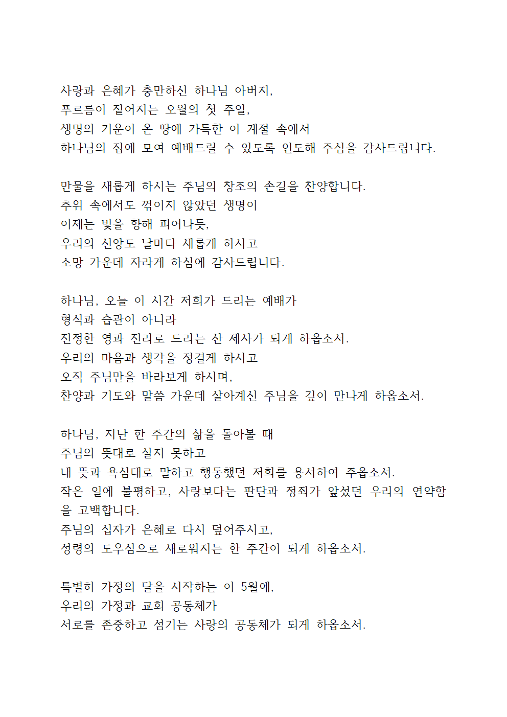 5월 첫째 주일낮예배 기도문