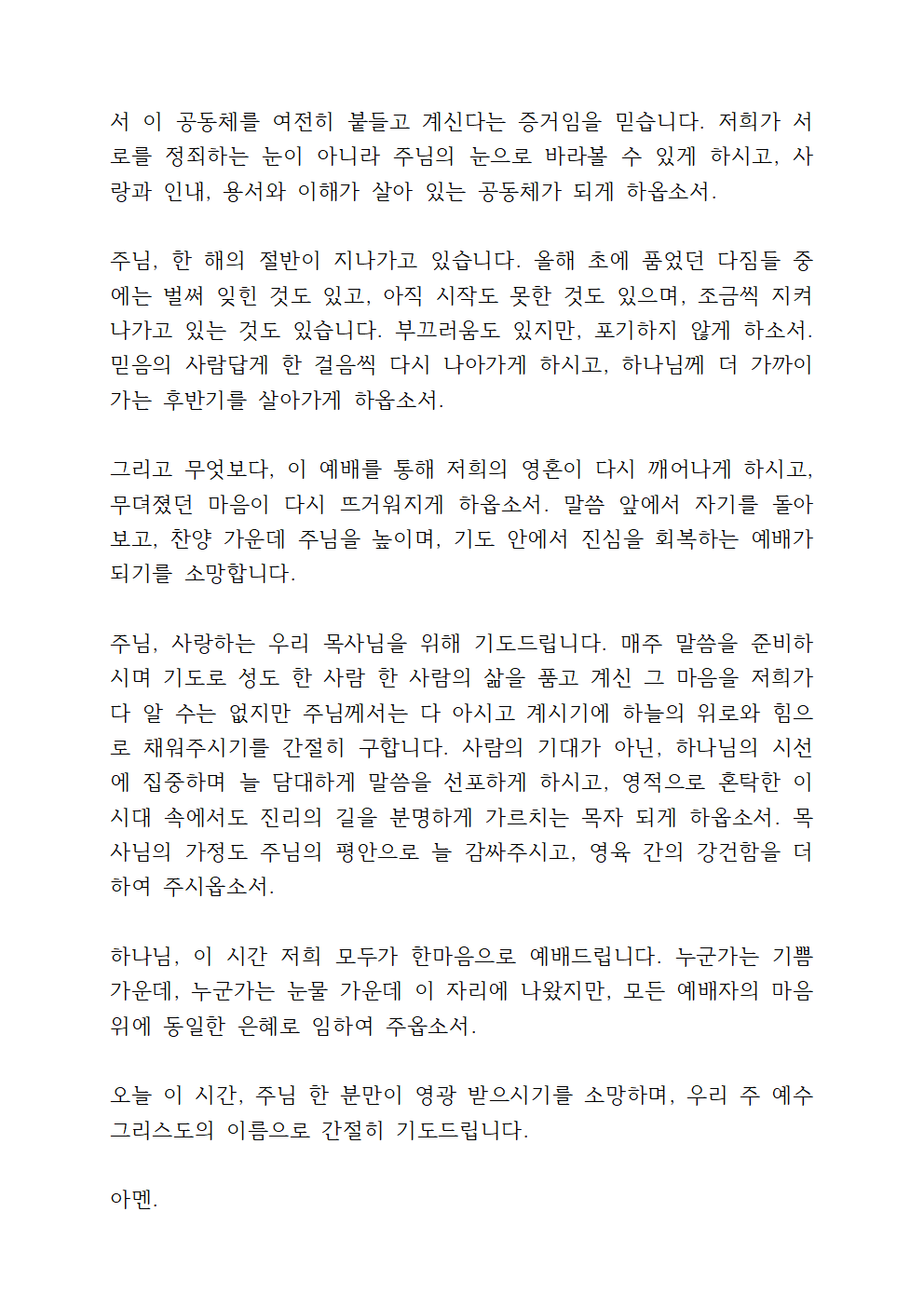 이번 글에서는 6월 다섯째 주일 대표기도문 모음을 안내해 드리겠습니다.