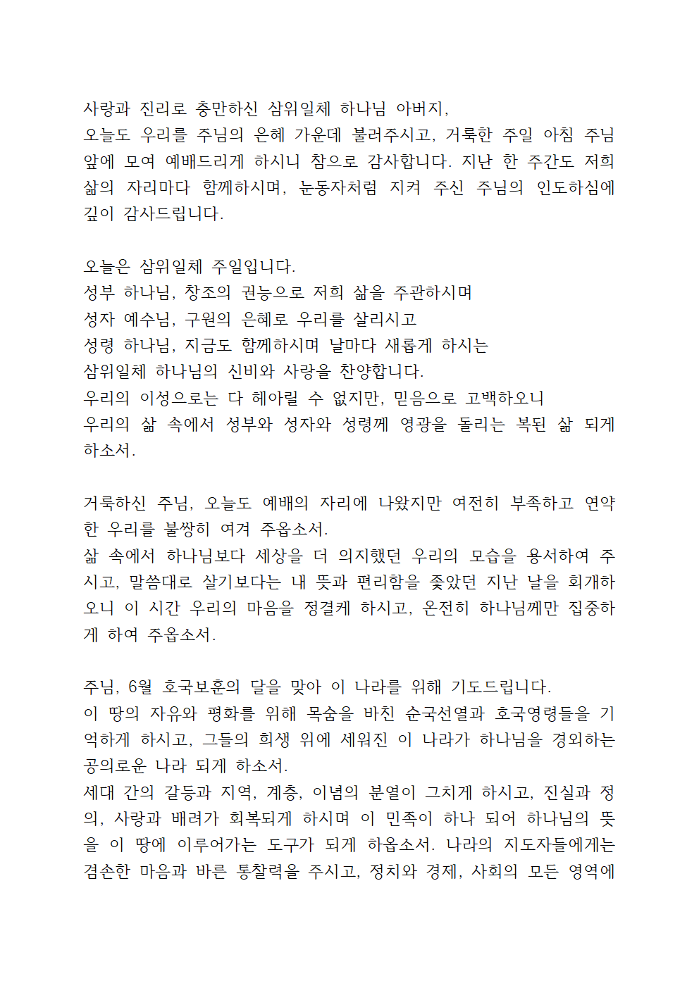 이번 글에서는 6월 대표기도문 모음 (pdf 파일)을 안내해 드리겠습니다.