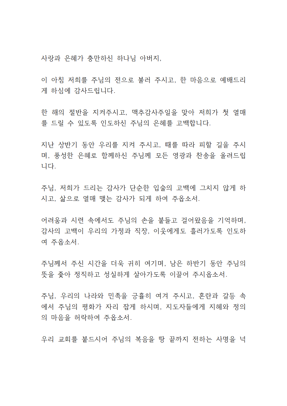 감사의 열매가 더욱 풍성히 맺히는 삶이 되게 하옵소서.