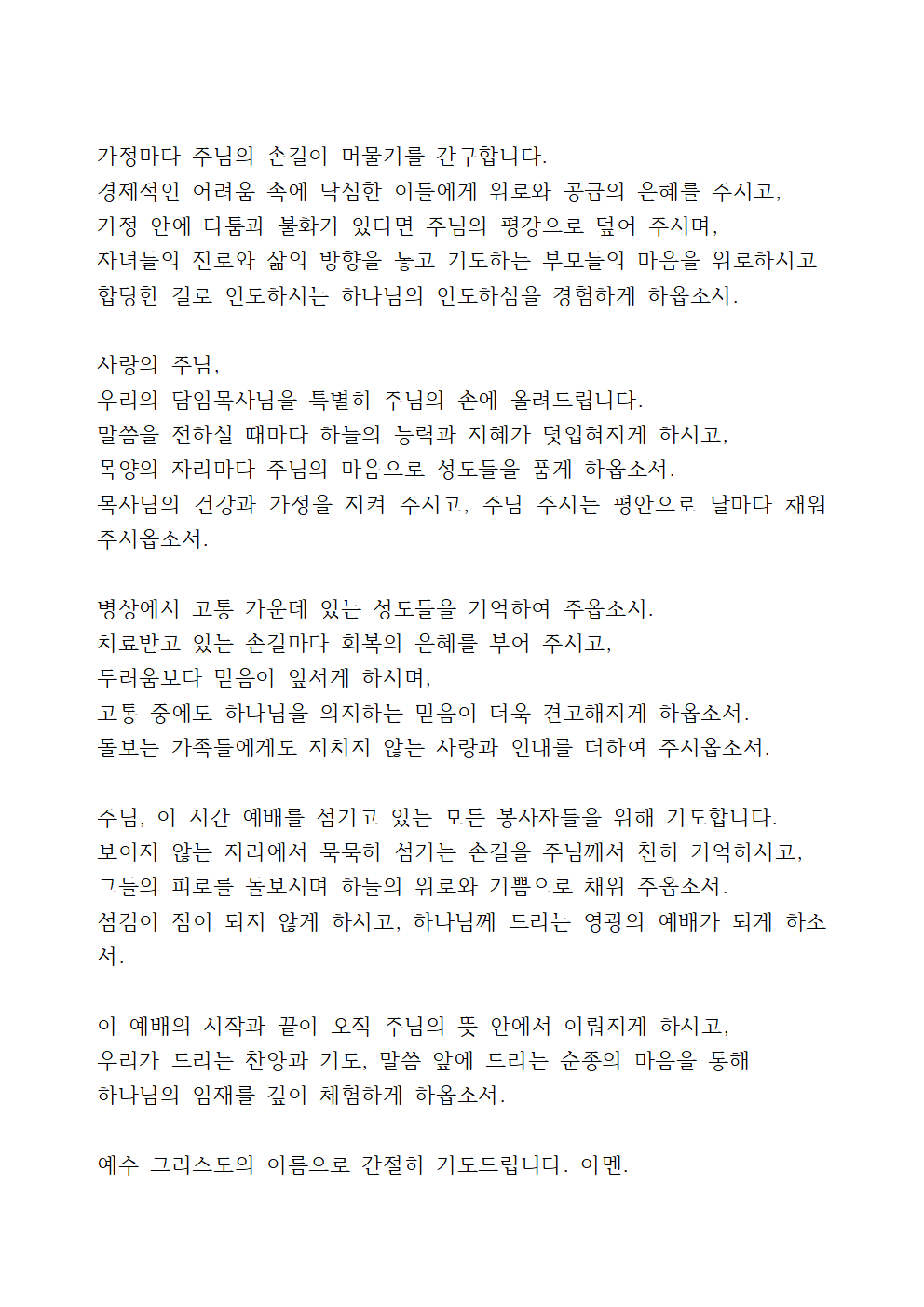 모든 영광을 주님께 올려드리오며 우리 주 예수 그리스도의 이름으로 기도드립니다.